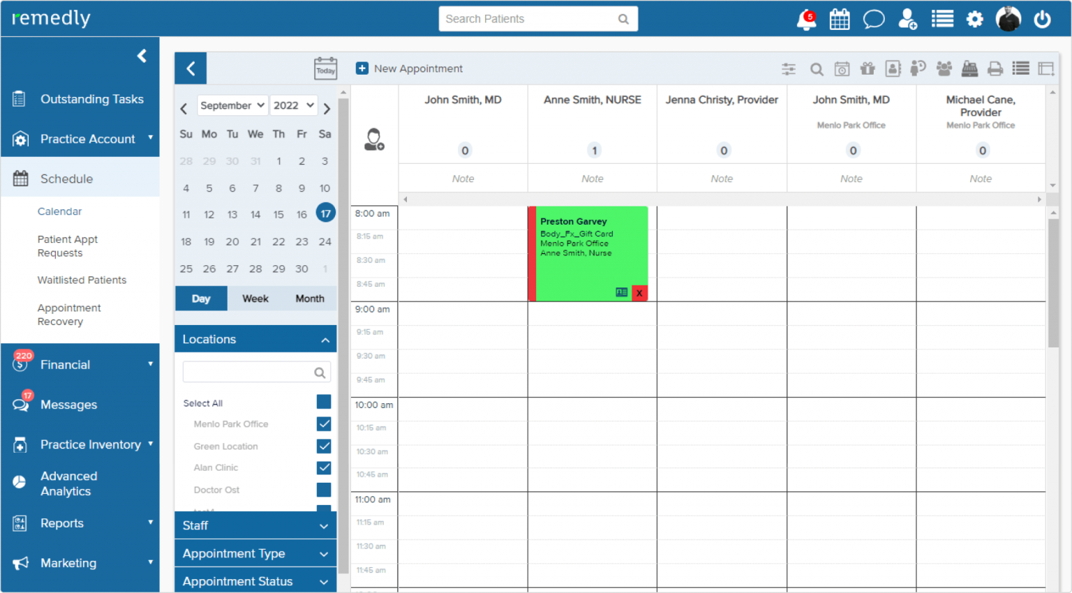 Practice management solutionOur powerful calendar helps keep electronic medical records organized and manages your team’s working hours. Easy to use, it allows you to confirm and reschedule appointments and manage audit logs with just a couple of clicks. Designed in accordance with HIPAA compliance regulations, Remedly EHR allows you to share data with staff and patients safely and conveniently.