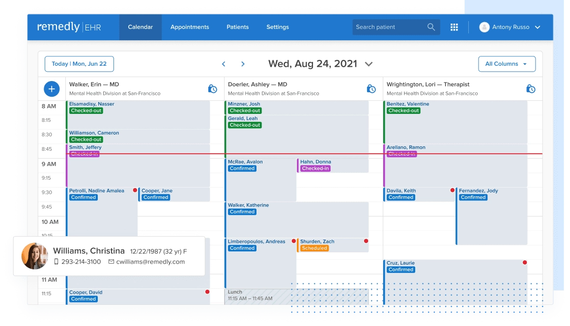 To have a more complete insight into the benefits of Remedly’s software, we welcome you to book a demo. To give you a taste of some of the key features, allow us to introduce you to a few of the practice management functionalities that would have the most positive impact: