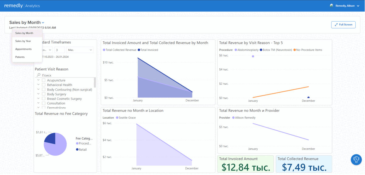 Financial management is rendered transparent and actionable through the rapid analysis of revenue streams by insurance payor, payment type, category, service codes, and patient encounters.