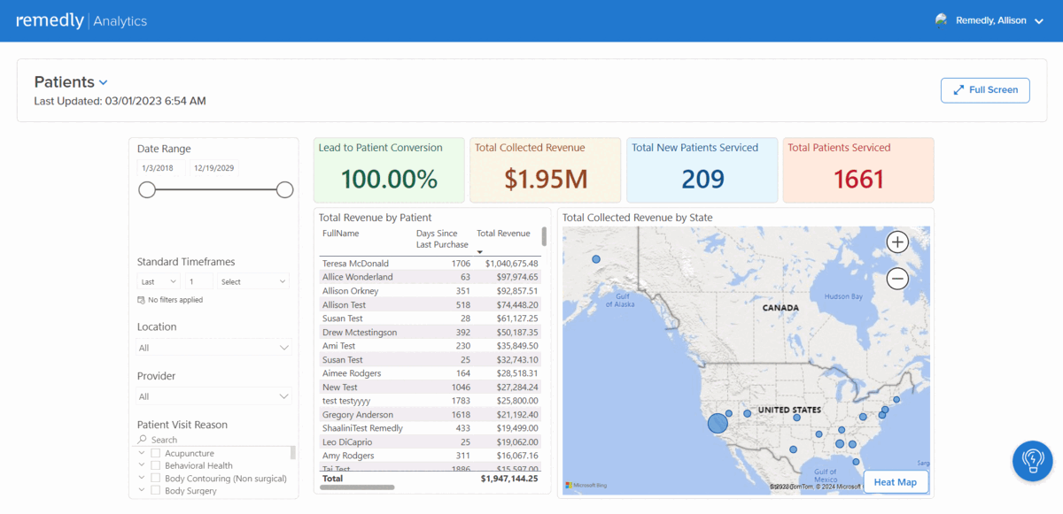 Quickly gain insight into your practice’s key operational and financial data with Remedly's Standard Reports. Seamlessly create tailored reports for any chosen date range, and download detailed Excel files with ease for more in-depth analysis or integration with your financial tools.